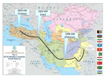 ⦁ Gauge & interoperability: Iran/Turkey/EU use standard gauge; Pakistan uses broad gauge (1,676 mm). Transhipment or bogie change will be required at gauge-break points (common rail logistic challenge). Plan: container swap hubs and well-equipped transhipment yards at border nodes.